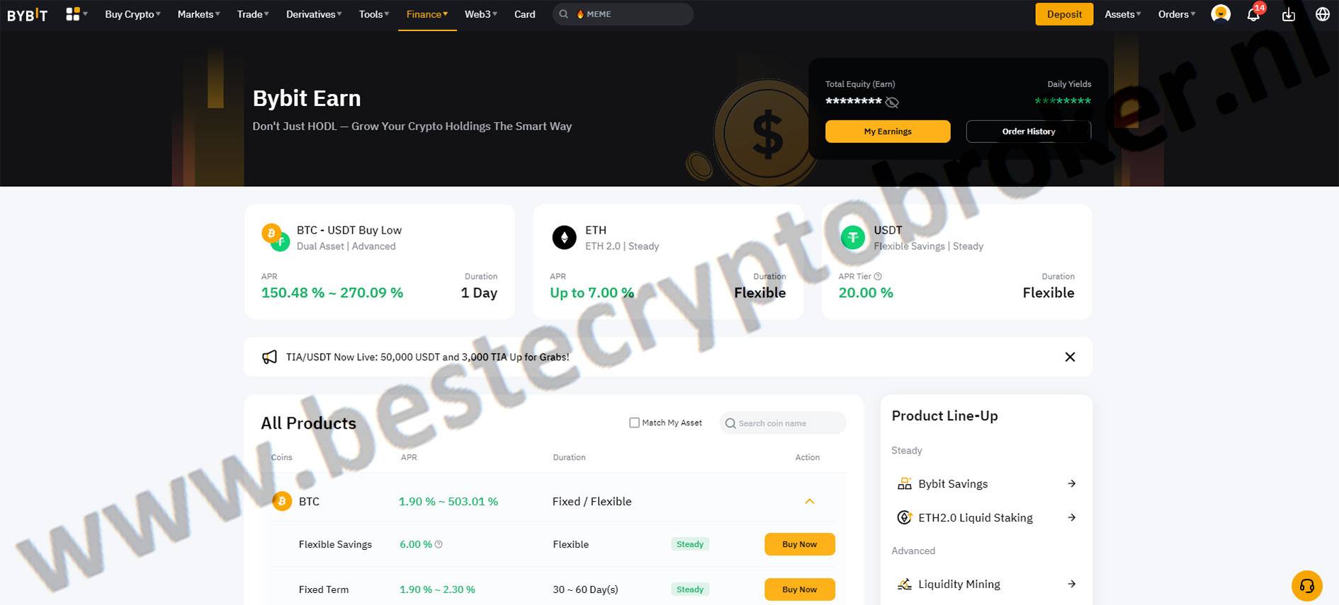 Het platform streeft naar hoge rendementen en biedt vijf verschillende manieren om extra inkomen te genereren. Dit maakt ByBit Earn populair onder crypto-investeerders, vooral in Dubai.