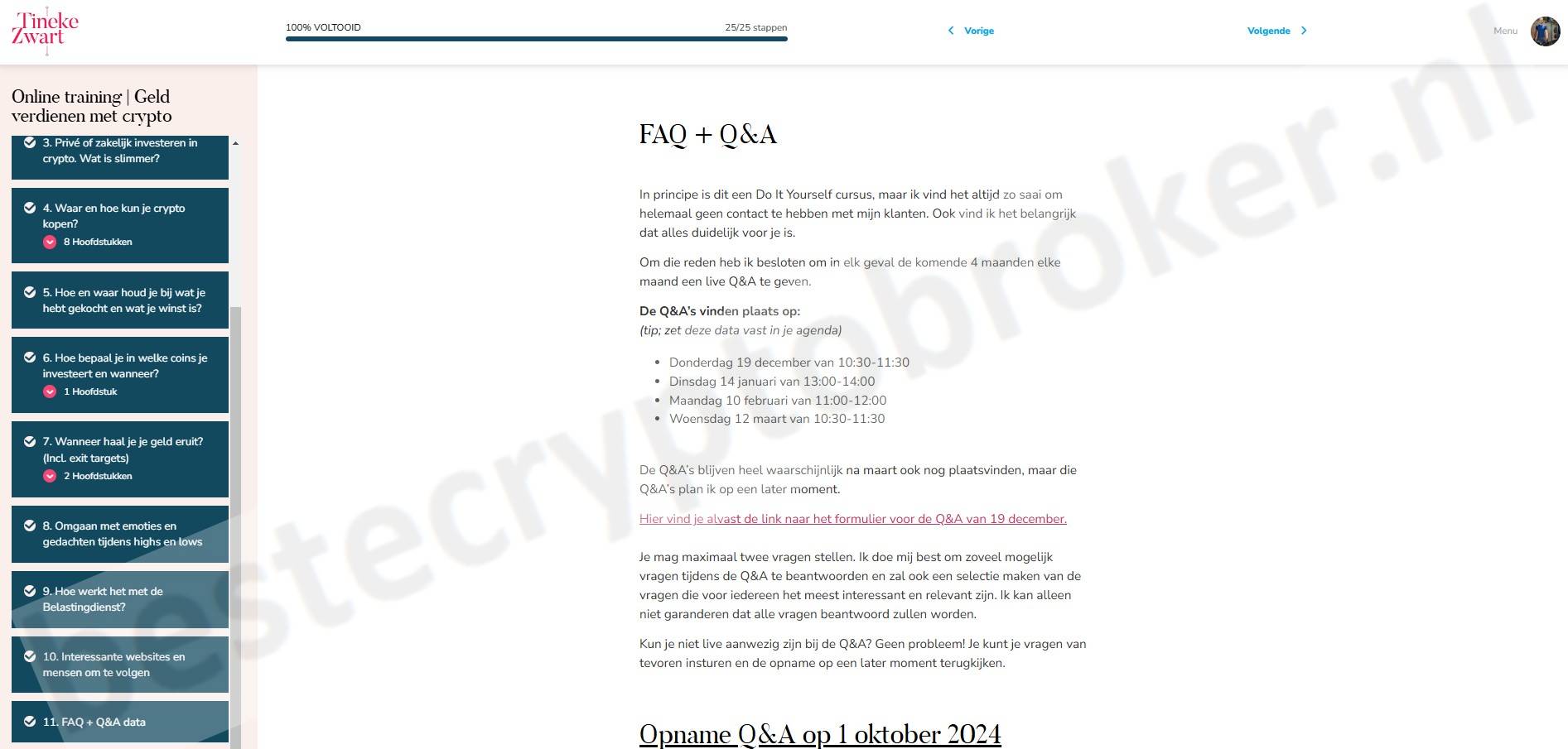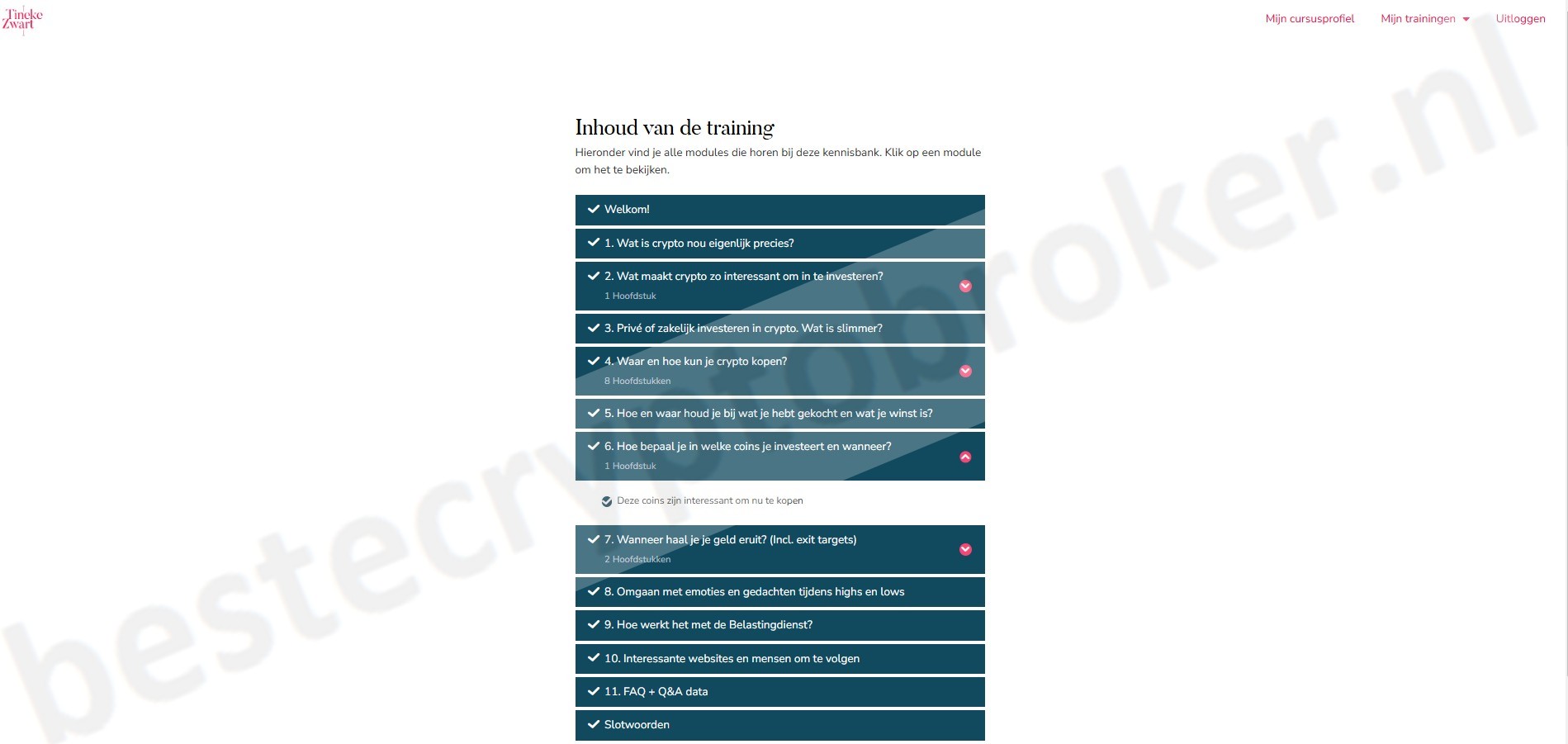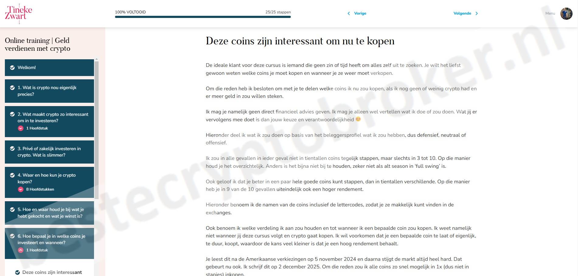 - 8 Wat is mijn eindoordeel van deze Tineke Zwart Crypto cursus Review