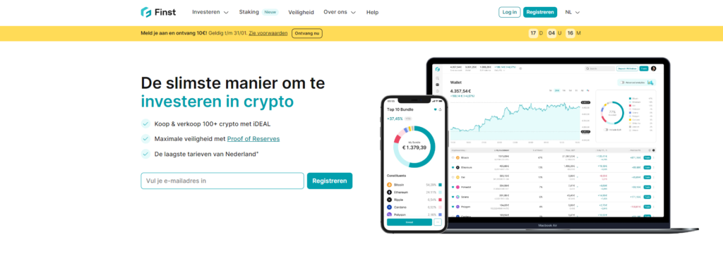 Veel mensen zijn dus tevreden over Finst. Reviews zeggen dat Finst zich heeft ontwikkeld tot een volwassen exchange. Lage fees, fijne app, mooie features als DCA en Auto Invest. Nu verder naar wat ik zelf vind van deze crypto broker!