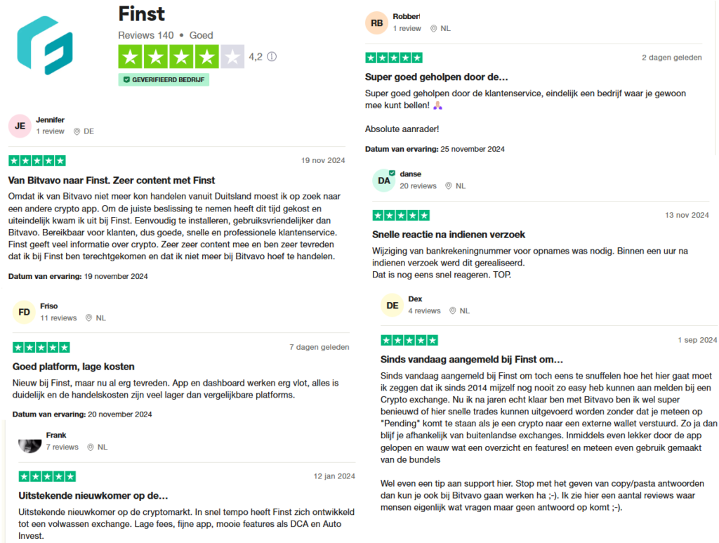 Daarnaast zie je ook veel mensen die overgestapt zijn vanuit Bitvavo en erg tevreden zijn. Dat zegt ook wel dat Finst echt een betrouwbaar platform is.