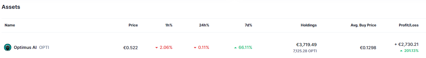 Kijk ik naar mijn coin als Optimus dan heb ik daar al +201,13% terwijl alt season nog moet beginnen (geen financieel advies)