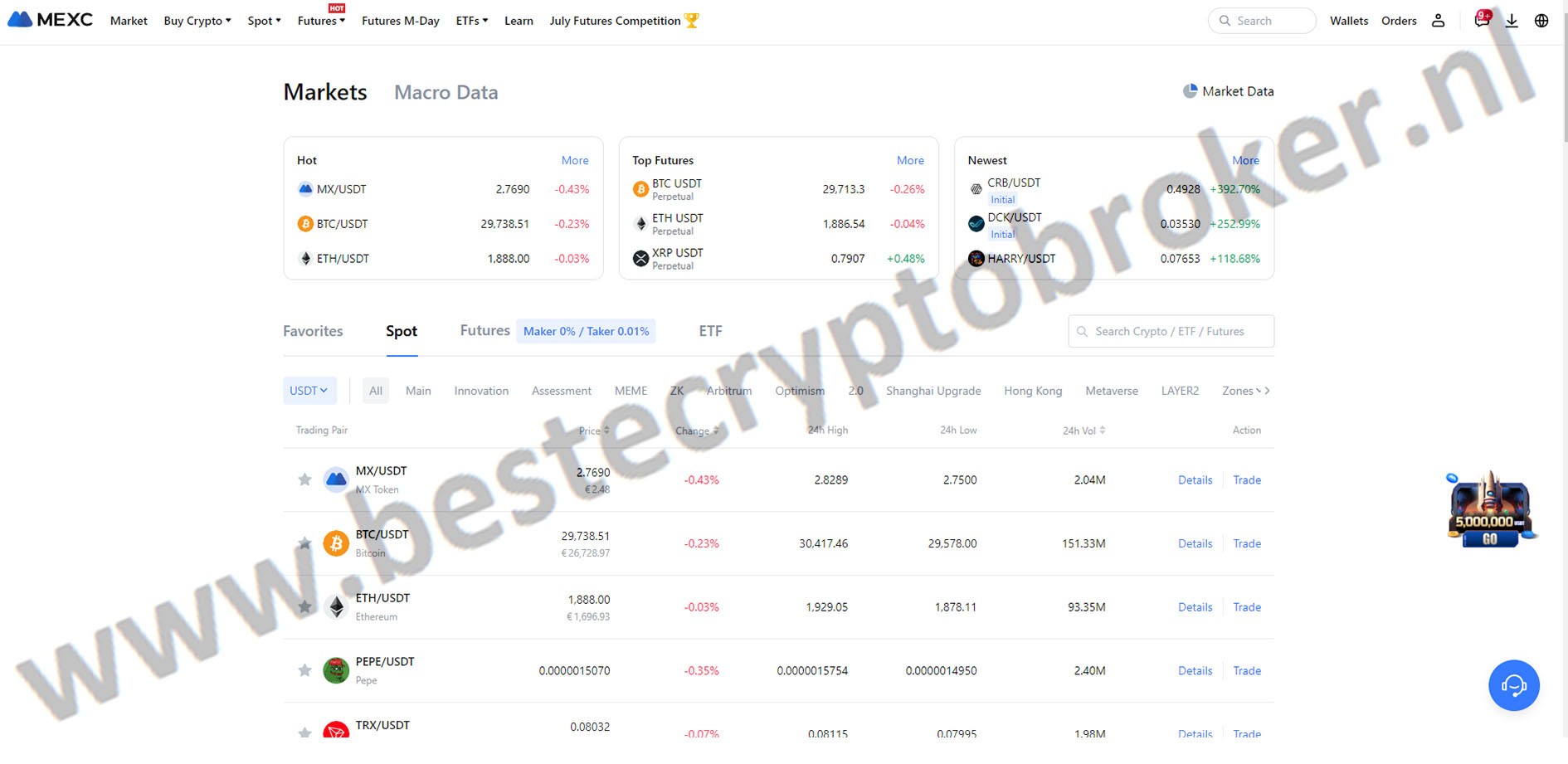 Ik heb me gratis geregistreerd op MEXC Exchange. Dit gaf mij direct toegang tot honderden cryptomunten.