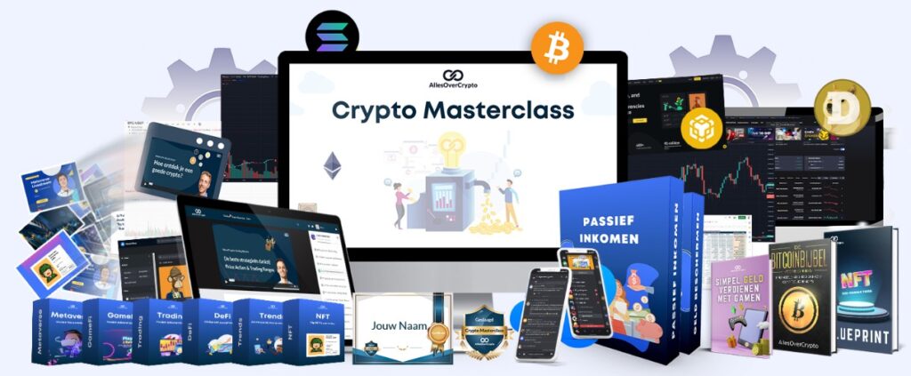 De Crypto masterclass biedt je meer dan 200 lessen voor één prijs. Voor slechts 697 euro krijg je direct toegang tot alle kennis zonder maandelijkse kosten. Dit pakket bevat modules over crypto trading, technische indicatoren en manieren om passief inkomen te verdienen.