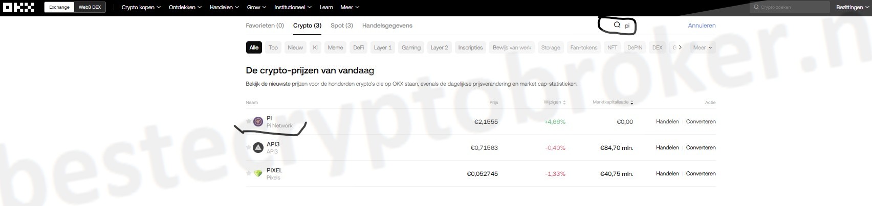 | Beurzen met Pi beschikbaar | OKX en anderen |