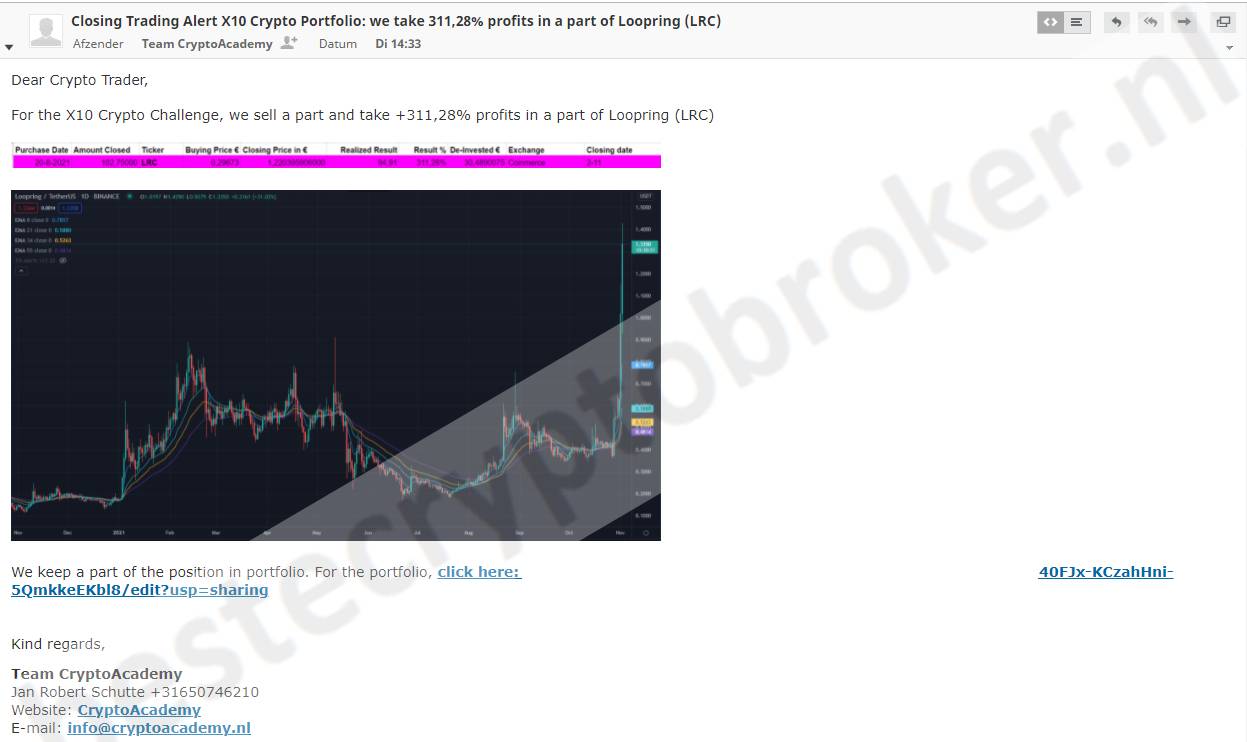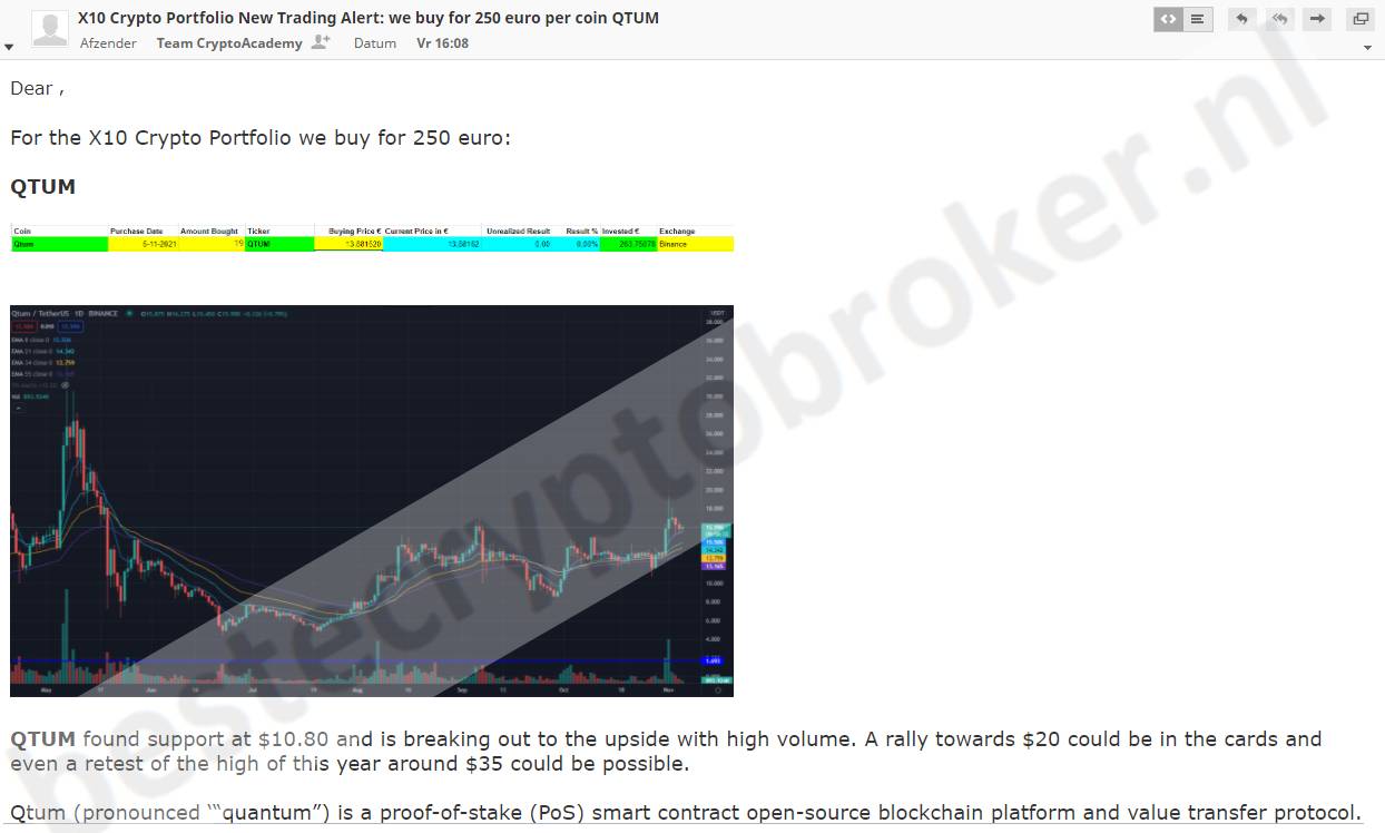 Daarnaast is de leeromgeving zeker niet het enige want je krijgt constant koop- en verkoopsignalen waarbij je zelf kan beslissen voor hoeveel je daarin mee wilt gaan. Zo krijg je alle tools om x10 te gaan met crypto.